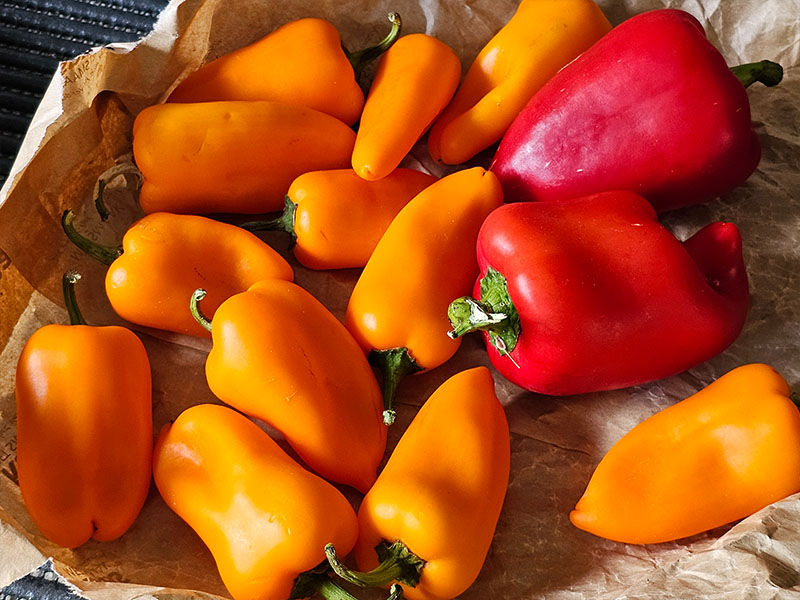 Oranje snackpaprika's zijn misschien wel de lekkerste. Net als snackkomkommers de ideale gezonde snack. Klein en behapbaar, heerlijk van smaak maar als je het mij vraagt ook het makkelijkst om te kweken en het meest productief.